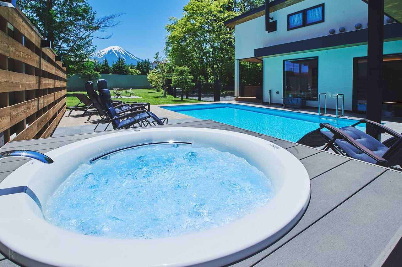 市内の至るところから雄大な富士山を眺めることができる富士山に最も近いまち・山梨県富士吉田市。「富士山別邸 ヴィラス和楽」は山梨観光の定番、新倉山浅間公園や富士急ハイランド、河口湖、忍野八海にも利便性のよい立地にございます。1棟貸切で利用できる全3棟の和風ヴィラは2階建て定員8名と贅沢なゆとりある間取り。お友達同士やご家族で気兼ねなく富士山に最も近いまちでのご滞在をお楽しみください