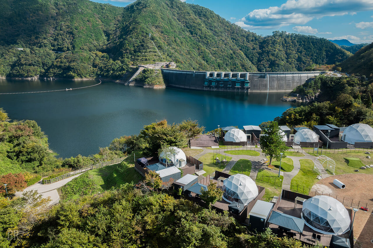 西日本最大の温井ダムのほとり、自然あふれる安芸太田町で楽しむアウトドアリゾート。大切なわんちゃんと一緒にご滞在いただけるドッググランピングとして、快適なドーム型テントでのご宿泊をお楽しみいただけます。自然と調和した四季折々の景観美で癒しと非日常、優雅な過ごし方を味わうことのできる宿泊施設です。