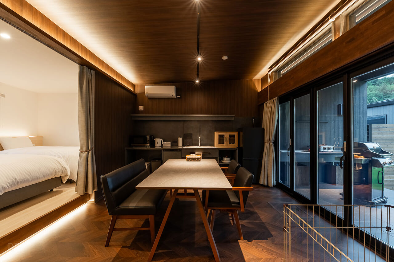専用ドッグラン、客室風呂、水風呂、エアコン、電子レンジ、空気清浄機、洗浄機付トイレ、専用食事スペース、無料WiFi、プロジェクター、キッチン(ラグジュアリーヴィラは除く)、冷蔵庫、BBQグリル、電気ポット、食器洗浄機