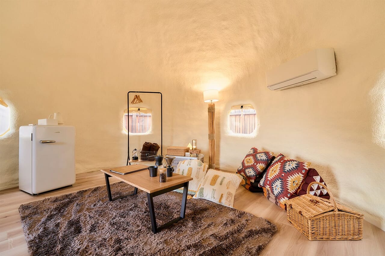 | 3 | 【敷地面積(ポッド含)】35m2 【室内面積】25m2 | 定員:4名 | お1人様 5,000円~(素泊まり/4名様1室利用時)※シーズンにより料金変動あり |