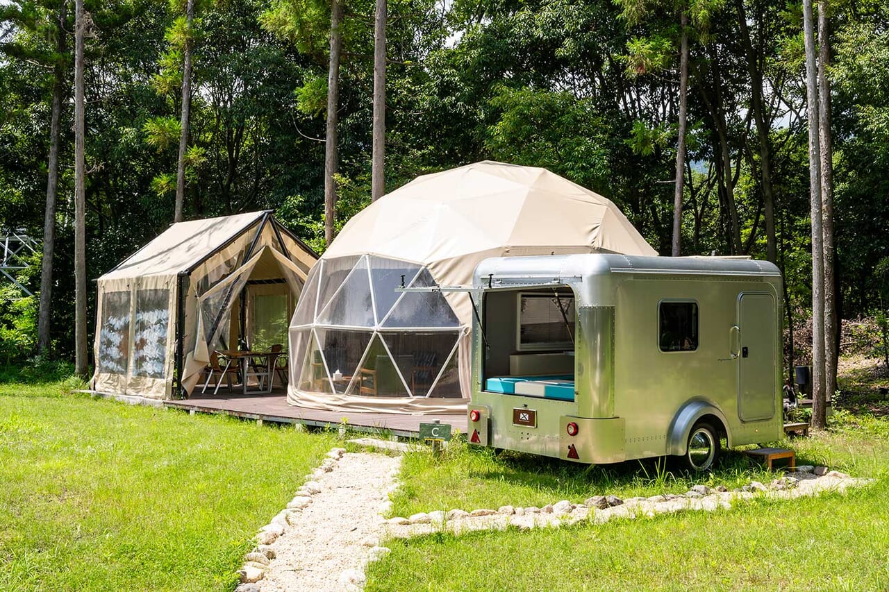 コンパクトでお洒落なキャンピングトレーラーと丸くてかわいいドーム型のお部屋をご用意しております。各お部屋冷暖房完備の快適滞在を演出。ご家族や大切な仲間と一緒に心にも残るひとときをお過ごしいただけます。お好みやご利用シーンに合わせた滞在をお楽しみください。