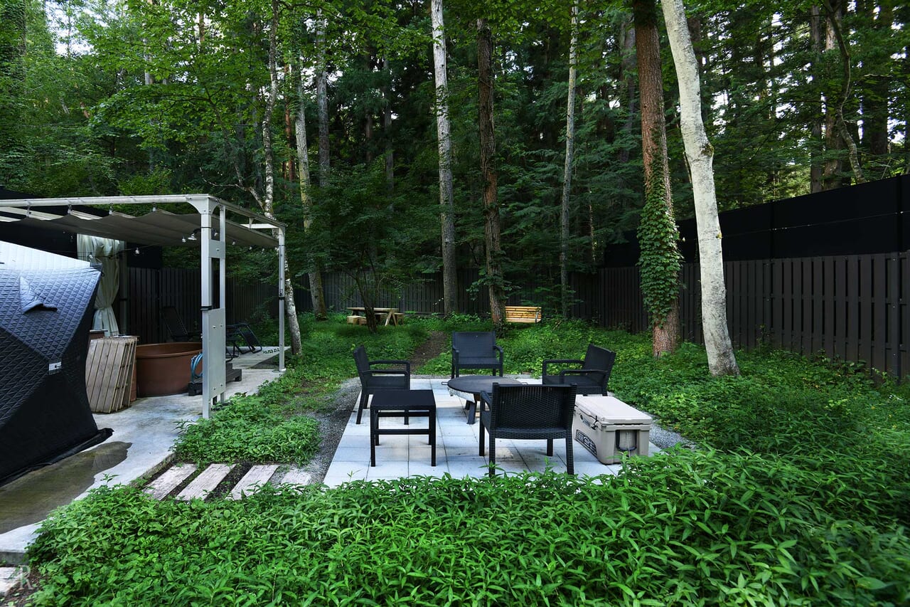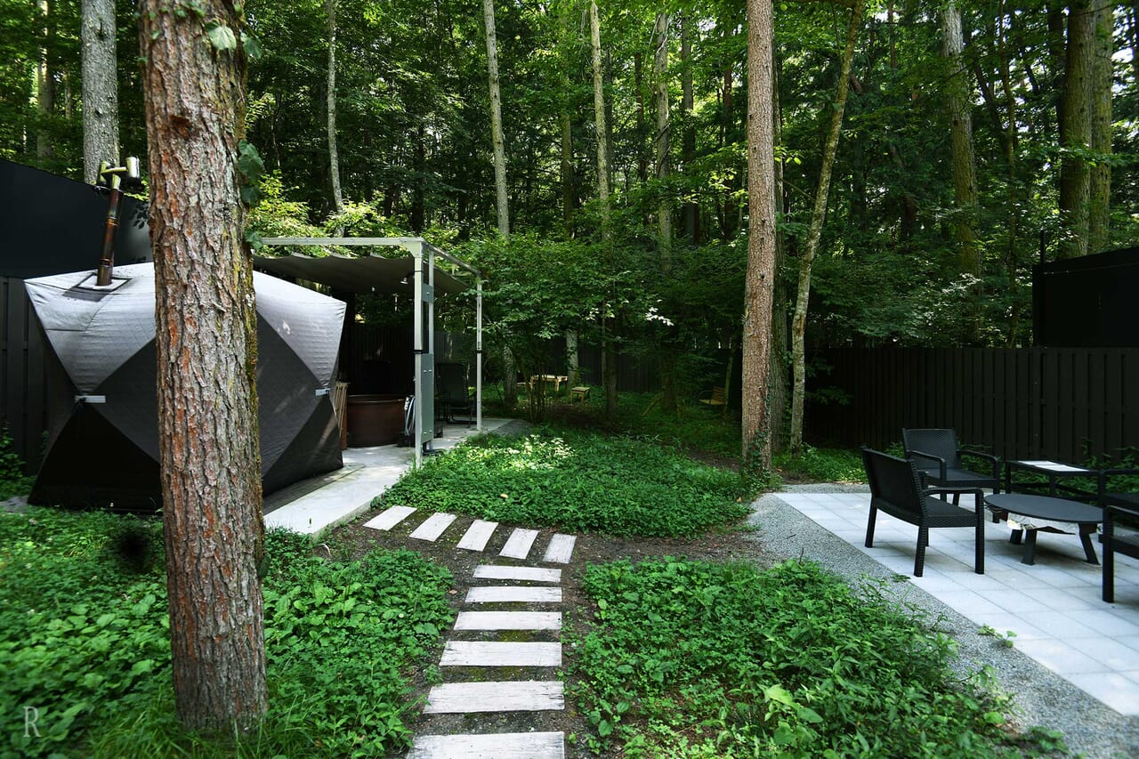 いずれの棟も高い塀で仕切り各棟専用のプライベート空間をご用意しております。専用スペースには、富士の麓の一大温泉地・河口湖温泉の天然温泉をたたえた客室露天風呂。チェックインからアウトまでお好きなタイミングで温泉をお楽しみ頂けます。さらに専用のテントサウナをご用意。セルフロウリュでじっくりとととのう体験を、プライベートガーデンでは外気浴をお楽しみください。 ※画像はイメージです