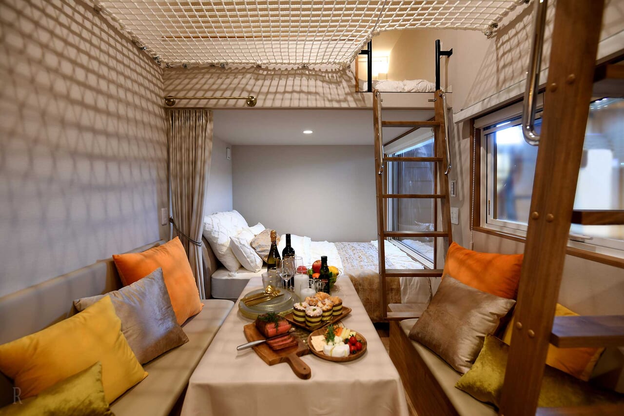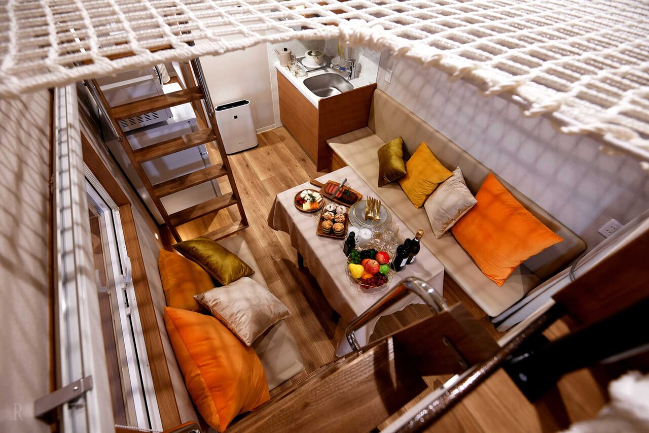 基本仕様の「スタンダード・スイートキャビン」と、さらに広大なプライベートガーデンのついた「デラックス・スイートキャビン」の2種類のトレーラーキャビンがございます。高いプライベート性と、冷暖房完備など充実の設備が特徴のキャビンで、快適なお時間をお楽しみください。 ※画像はイメージです