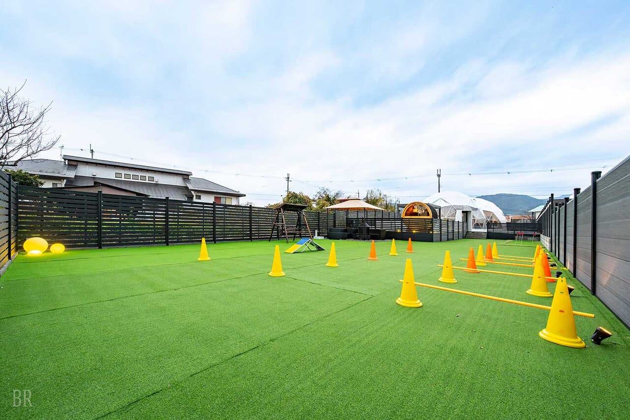 自由に走り回れるプライベートドッグランをご用意しています。 周囲を気にすることなく過ごせる開放的な空間は、安心・安全に配慮した設計で、ノーリードでものびのびとお楽しみいただけます。 自然に包まれた静かな環境の中で、わんちゃんにとっても特別で贅沢なひとときをお過ごしください。