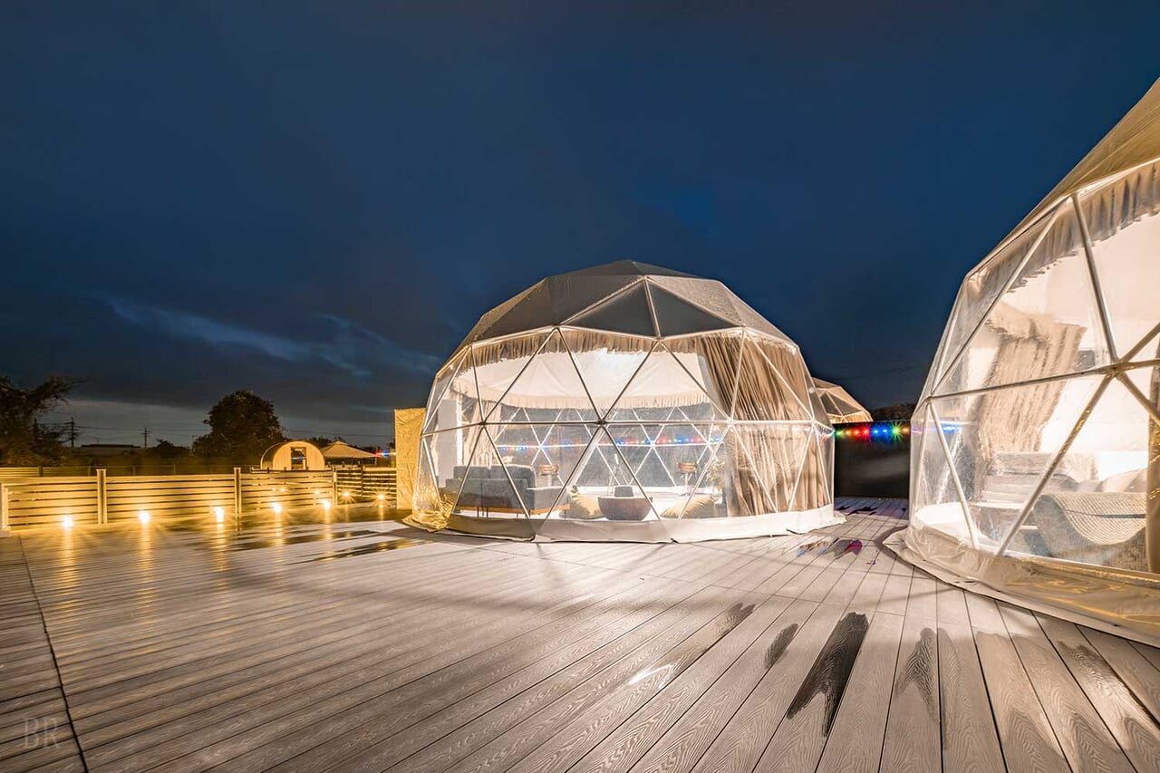 愛犬と一緒にゆったり過ごせる大型ツインドームは、リビングとベッドルームを分けた、開放感のある空間設計。 それぞれの時間を大切にしながら、思い思いのペースでくつろげる心地よさが魅力です。 リビングでは愛犬と遊んだり、会話を楽しんだり。 ベッドルームでは、静かに体を休めるくつろぎのひとときを。 シーンに応じて安心して過ごせるのも嬉しいポイントです。