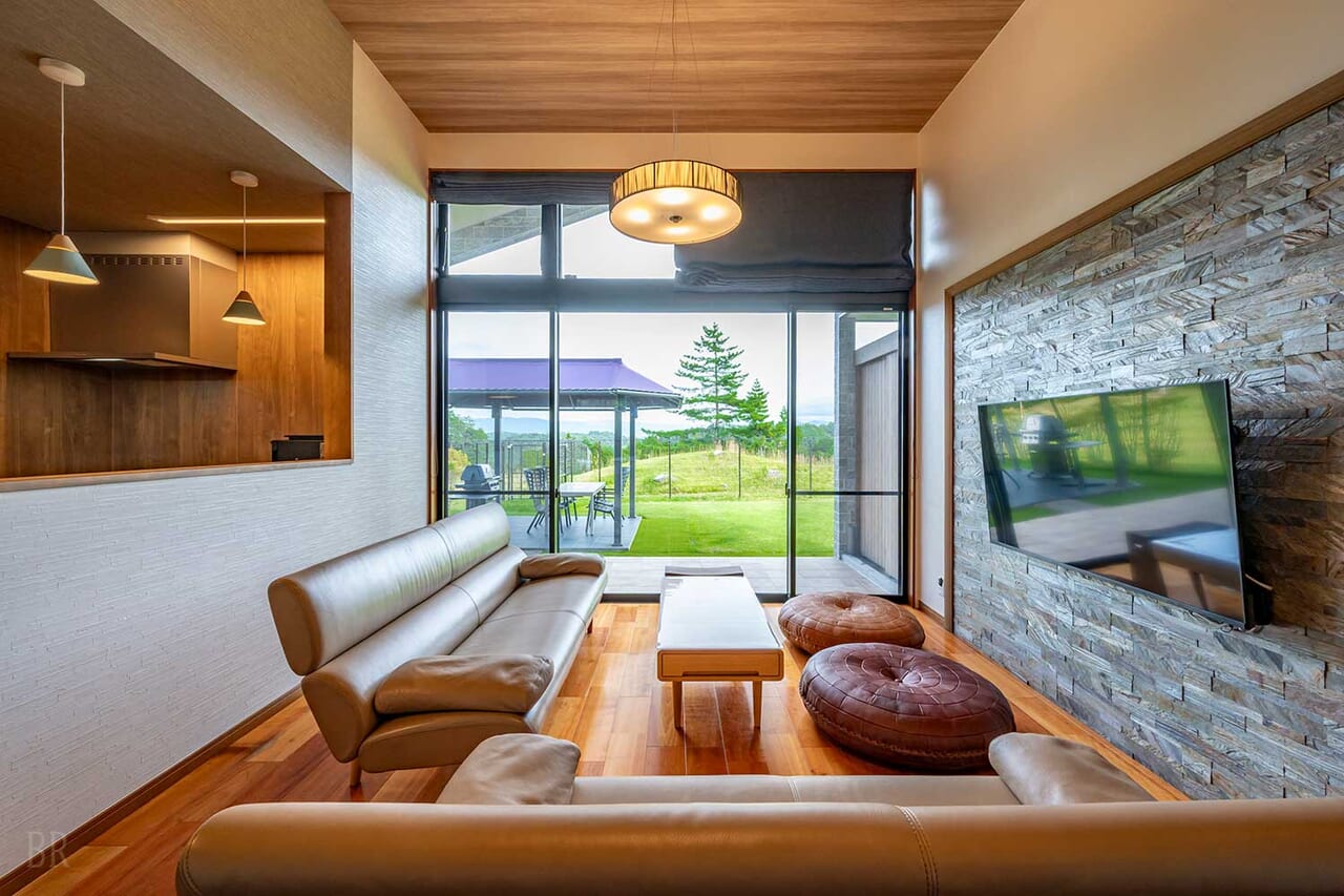 プライベートドッグランを含む、各棟300㎡の専有面積を確保し、愛犬が走り回ってもゆとりのある空間としております。お部屋にはキッチン付の食事スペースと屋外にはBBQスペースを完備。愛犬と離れることない滞在が可能なお部屋となっております。