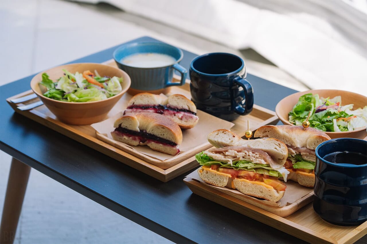 グランピングの朝食の定番、ホットサンドをご用意しております。
