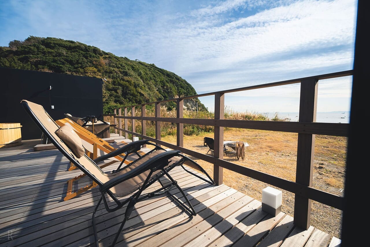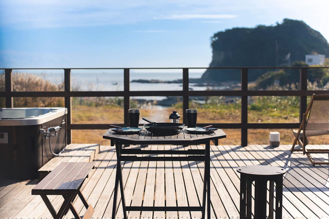 都心から90分、三浦半島の秘境に誕生した1日2組限定の「STOKED private villa 松輪」。 全棟にセルフロウリュサウナとジャグジーを完備し、目の前には宿泊者だけのプライベートビーチが広がります。