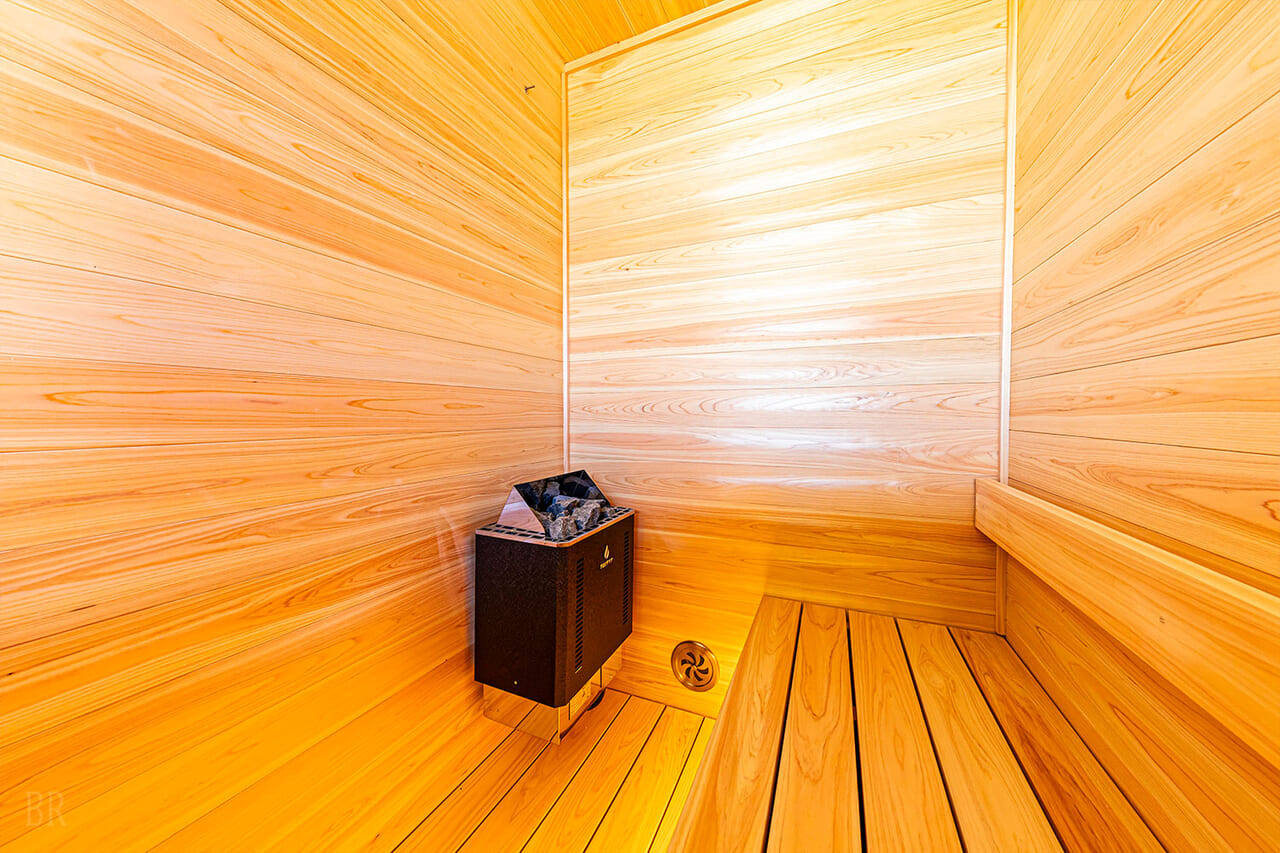 <アドベンチャードーム>にはプライベートサウナを全棟で完備。埼玉の大自然の空気の中で贅沢にととのう、ワンランク上の滞在を。