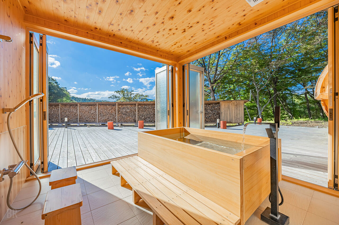 同敷地内に全長4mの大型バレルサウナを設置。最大8名で利用可能、貸切でグループ一緒に“ととのう”、最高の癒し時間を満喫。自然の音に耳をかたむけ、日常を忘れてアウトドアならではの体験をお楽しみください。