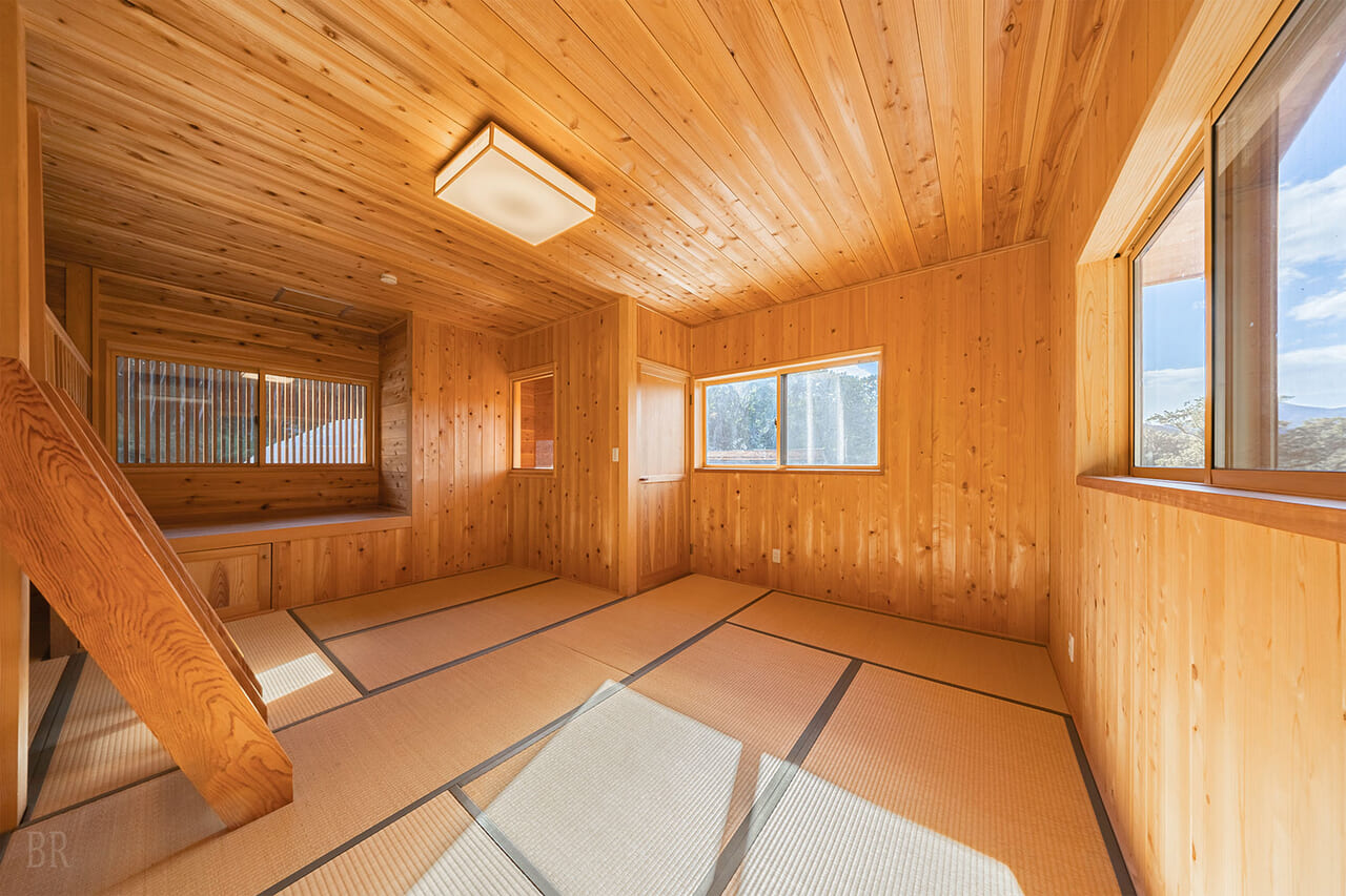 東北エリア初!直径10mの超大型ドームテントは最大12名まで宿泊可能です。木の温もりを感じる和モダンなコテージには、1階にキッチンとヒノキ風呂を設置した浴室、トイレ2つを完備。2階には8名まで泊まれる和室があり、グループ利用時にドームテントとわかれてご就寝可能です。