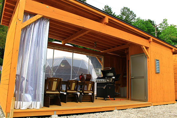 各テント横のBBQスペースでは、夕食や朝食をお楽しみいただけます。シャワー室・トイレも完備しております。