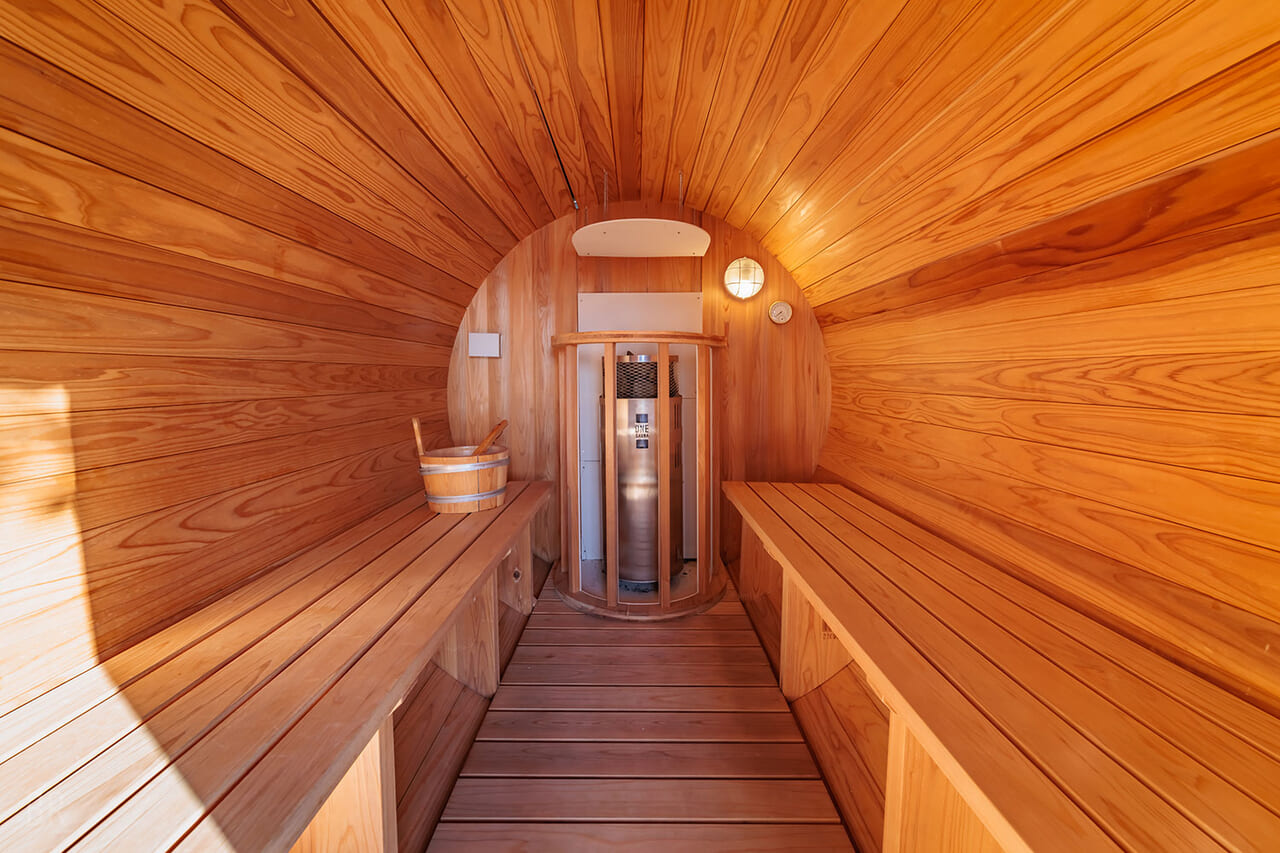 今流行の樽型木製サウナ(バレルサウナ)が体験いただけます。 サウナは血行が良くなり疲労回復と、美白効果などが期待できます。
