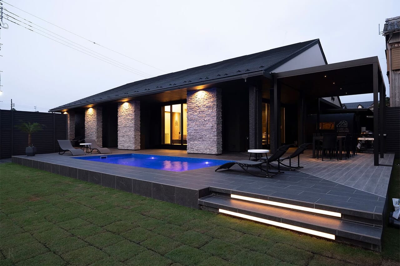 彦根城近くに佇む最大12名宿泊可能な一棟貸切ヴィラ。約500平米のプライベートガーデンや本格サウナ、愛犬と泳げるプールを完備。名店「池もと」の近江牛を味わうBBQも人気です。3世代旅行やペット同伴のグループ旅行に最適な贅沢空間で非日常の滞在を。