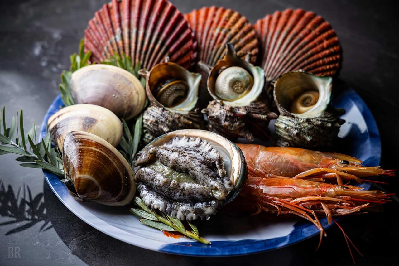 └特大大海老・ヒオウギカイ・サザエ・ハマグリ・ア