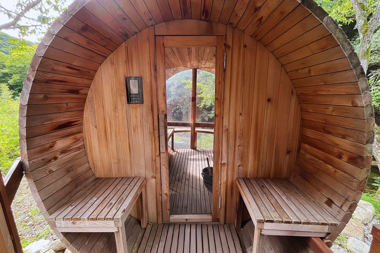 熊野川の息をのむような美しい清流を前に、憧れのバレルサウナで究極のリフレッシュ体験を。
