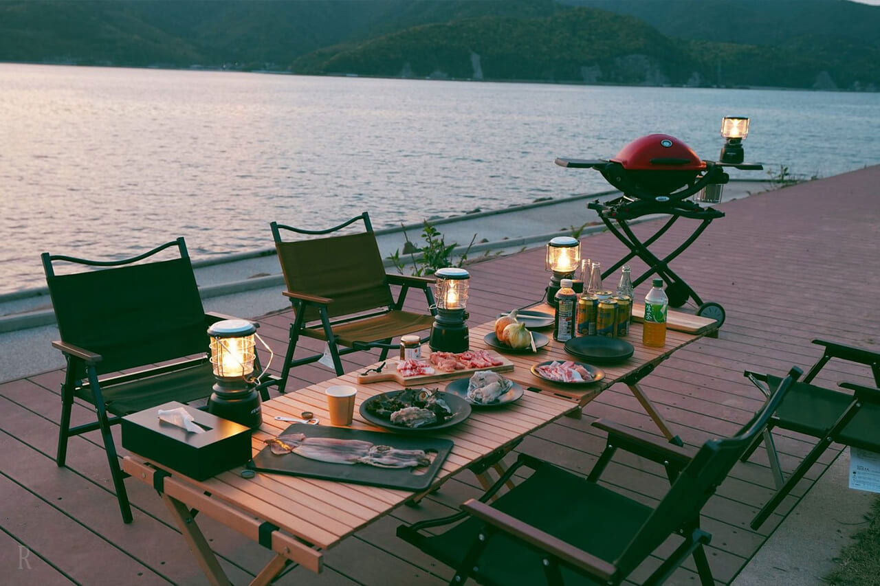 個別のBBQスペースで隠岐の島町の食材をふんだんに使用したグランピングBBQをお楽しみください。