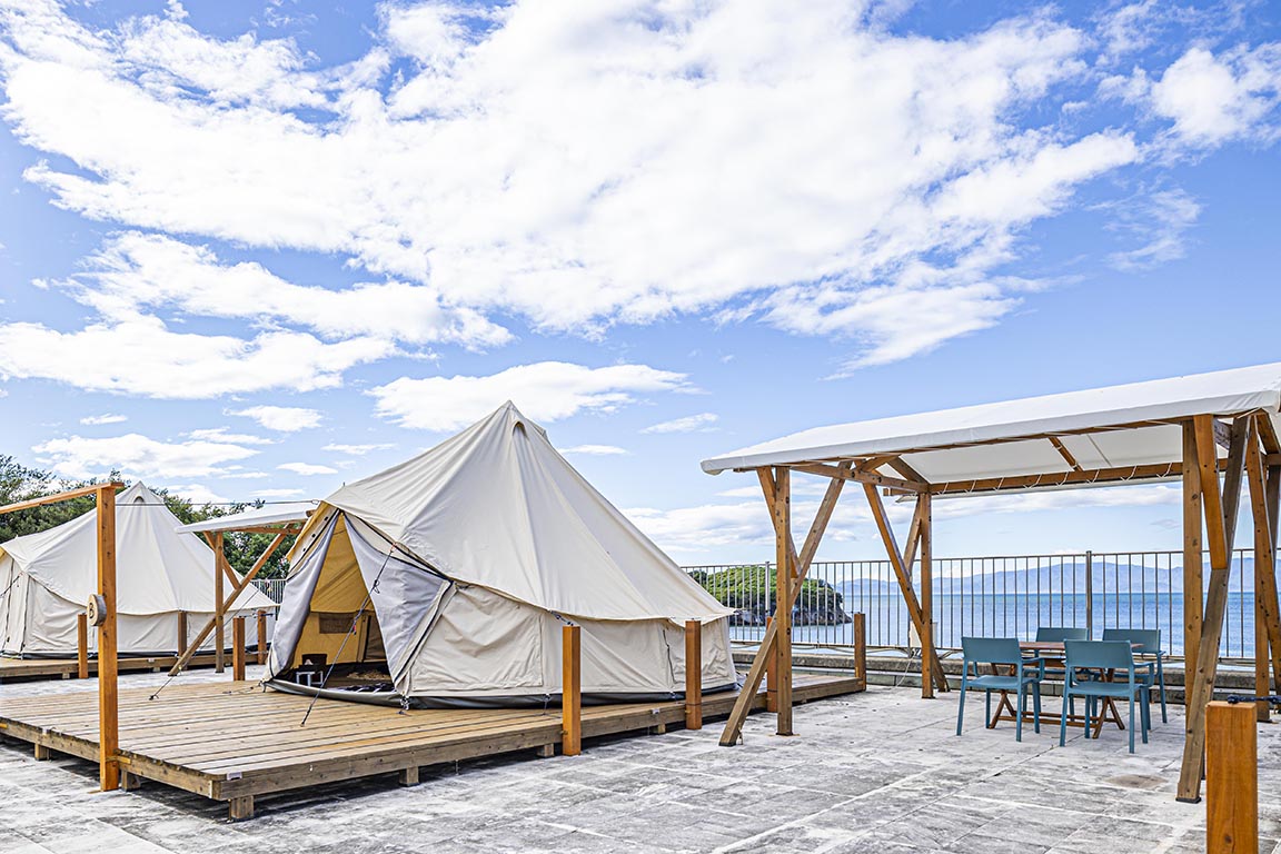 瀬戸内海を一望する絶好のロケーションに位置する「瀬戸内リゾート ベッセルおおち」に、気軽にアウトドアを満喫できるグランピングエリアがオープンしました。