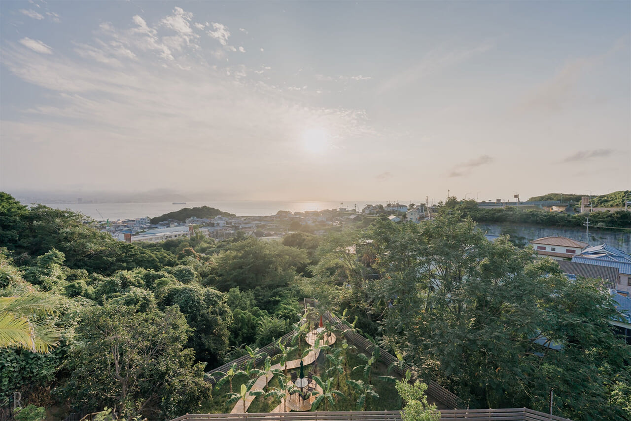 海を望む最高のロケーションから眺める夕日、客室ではプライベート温泉も楽しめる極上アウトドア体験を演出。
