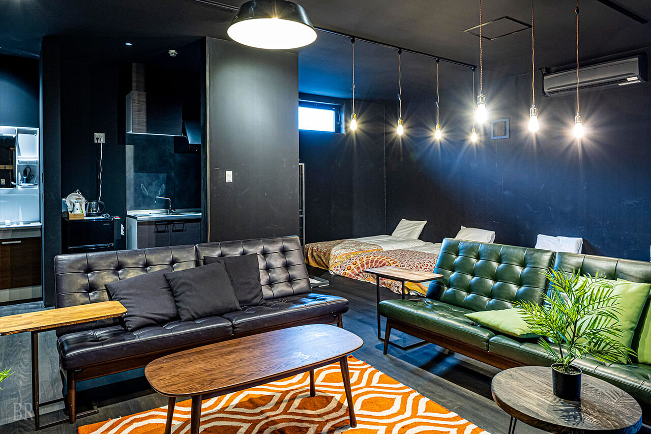 大のおとなが本気で創った、泊まれる秘密基地"L-BASE" 長野県松本市郊外の住宅街にひっそりとたたずむ遊び心あふれる4種7部屋のみの貸切ゲストハウスです。