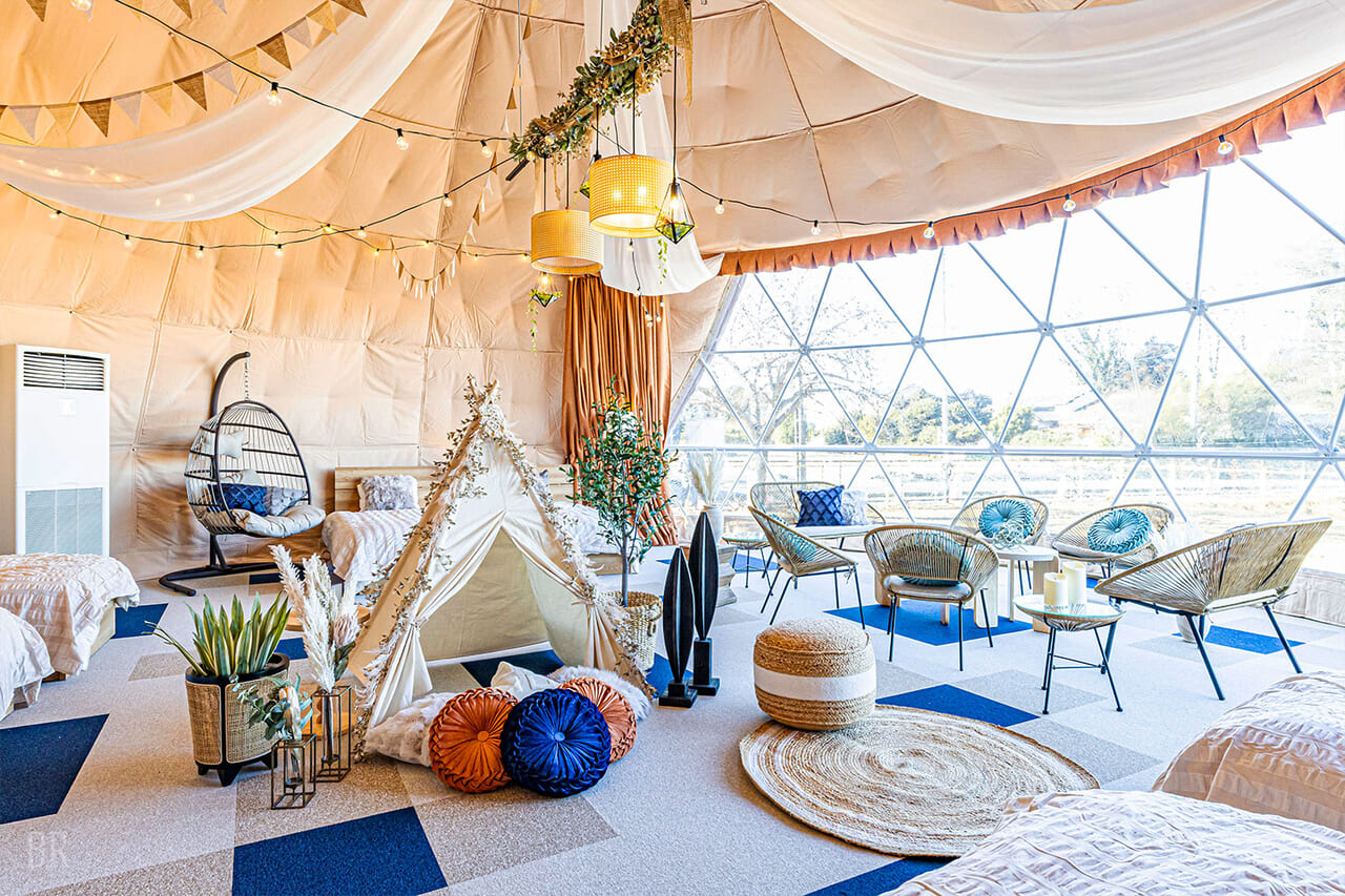 空と海が作り出す雄大な自然、九十九里浜のちょうど真ん中に位置した千葉県山武市にあらゆる滞在ニーズにお応えできるリゾートグランピング施設。