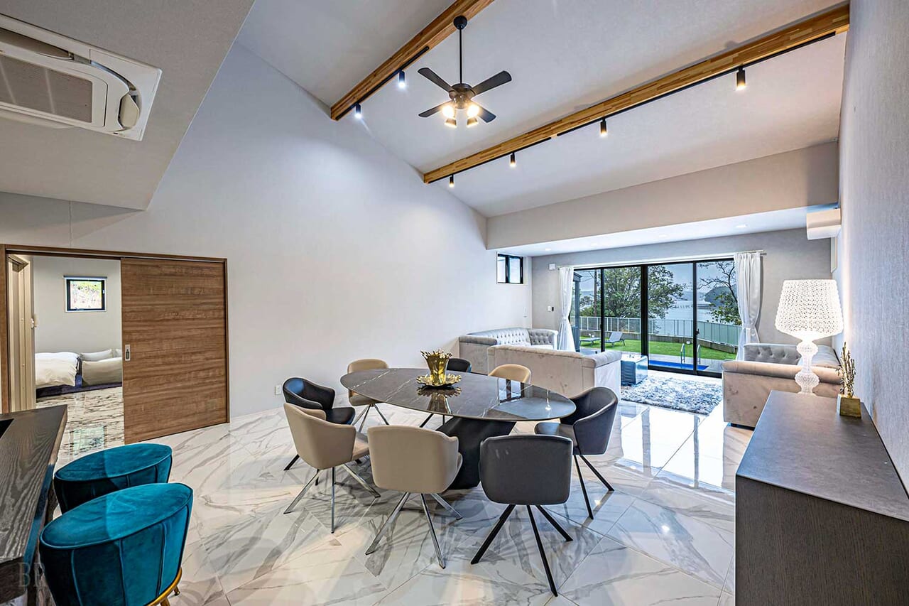 クラシックとモダンが調和した空間、広々とした芝生のプライベートガーデンで、唯一無二の特別な休日をお楽しみください。