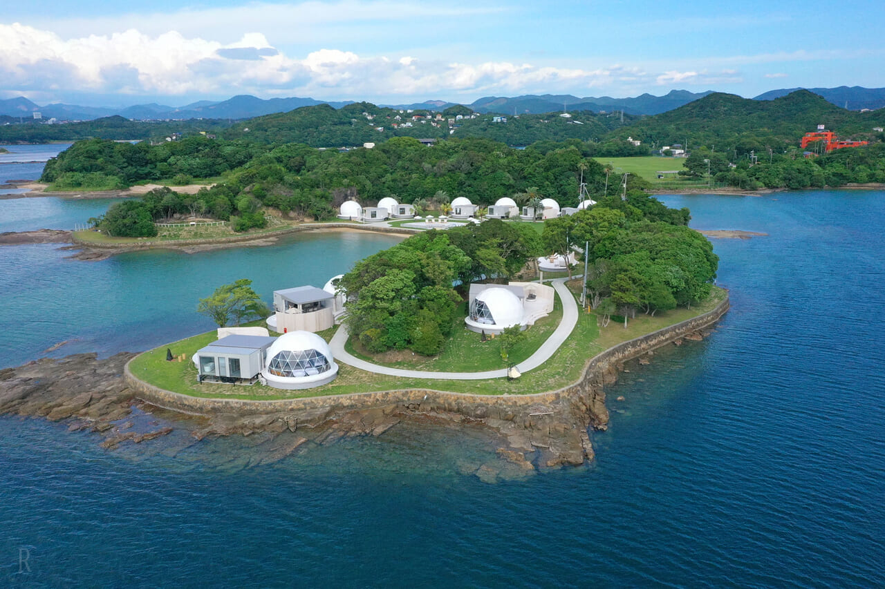 瀬戸内の浮かぶ島々のひとつ、面積わずか5.57㎢の高根島に位置する5棟のみのプライベートグランピング。オーシャンビューの絶好のローケーションには、大型ドームテントと広島県初となるコクーンテントをご用意しており、全室に個別でお風呂、トイレを備えた高規格のラグジュアリーグランピングとなっております。またコクーンテントでは、愛犬との宿泊も可能となっており、専用ドッグラン付きなのでプライベートにお楽しみいただけます。