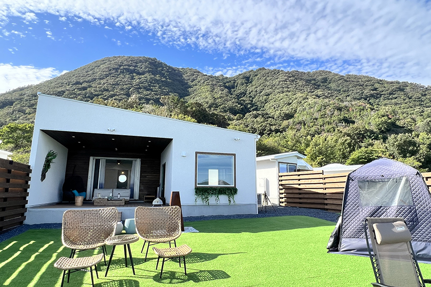 瀬戸内に浮かぶ島々のひとつ、面積わずか5.57㎢の高根島に位置する5棟のみのプライベートグランピング「グランヴィレッジ瀬戸内しまなみ」。大型ドームテント、広島県初の繭(まゆ)のような独特な形状のコクーンテントがあります。穏やかな海を眺めながらゆったりと流れる時間をお楽しみください。アジリティ付きのプライベートドッグランが設置されているので、ペット同伴旅行にもおすすめです。