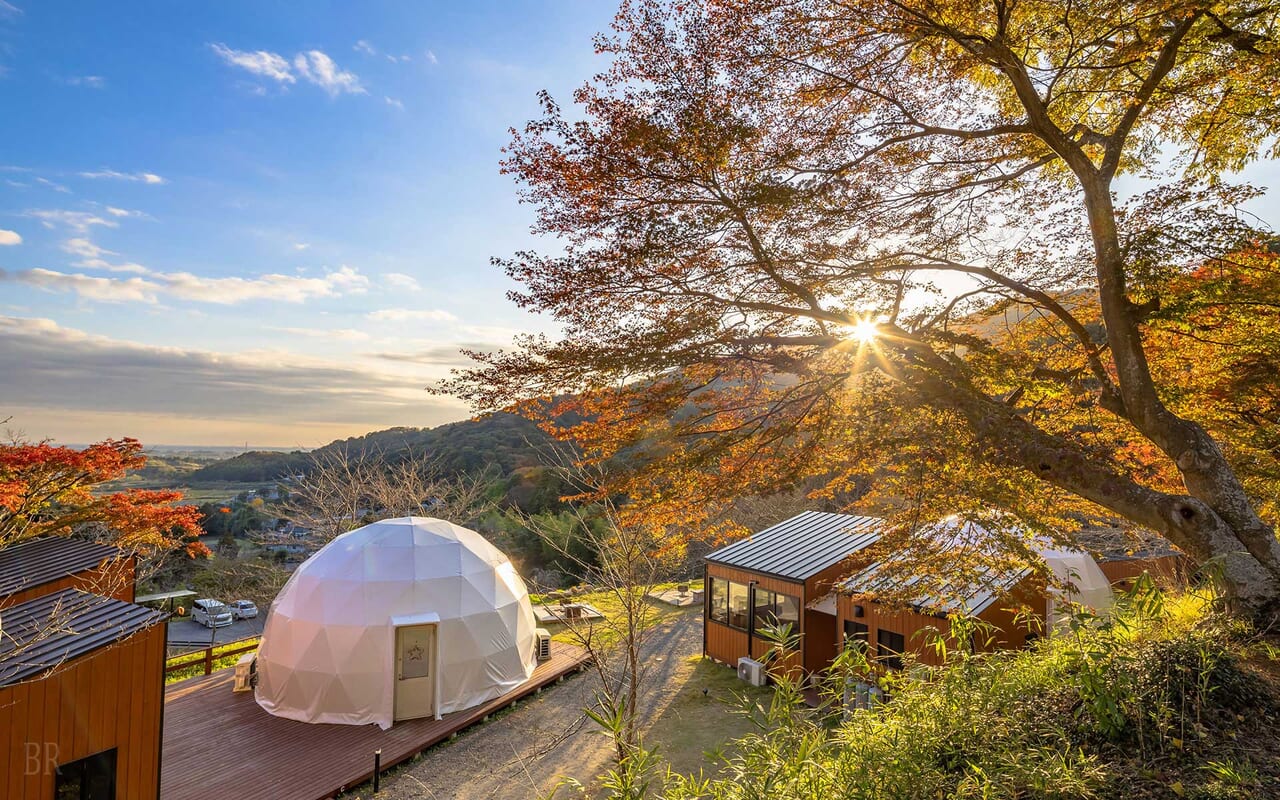 茨城県土浦市の高台に立つ「アウラテラス茨城」は、「おしゃれ」と「コスパ」を両立したい学生グループにおすすめのグランピング施設です。予算重視の皆さんには、1万円台から狙えるお得なプランも用意されています。 ドームテント内は冷暖房完備、トイレ・お風呂も個別なので、キャンプが初めての友達がいても安心。快適なホテルステイ感覚でアウトドアを楽しめます。