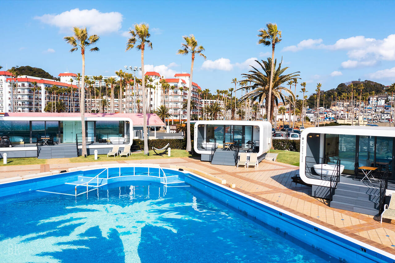 憧れのリゾート地、神奈川県逗子マリーナに位置する「SPACE KEY POINT リビエラ逗子マリーナ」は学生の女子旅にも学生カップルにも最高の“非日常”を提供する、SNS映えのグランピング施設です。 ヤシの木と青い海、その先に富士山や江ノ島を望む最高のロケーションは、まるで海外映画のヒロインになった気分になれること間違いなし。